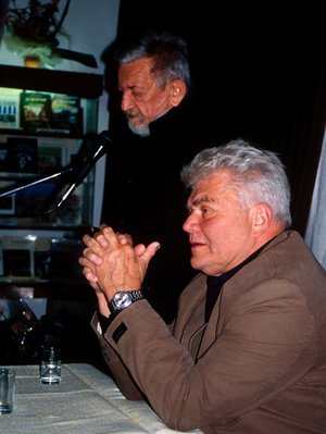 [Na zdjęciu: Witold Michałowski oraz Piotr Kuncewicz otwierający wieczór autorski książki "Wielkie safari Antoniego O." w Domu Księgarza na Starym Mieście w Warszawie.
