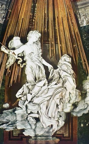 Giovanni Lorenzo Bernini: Ekstaza Św. Teresy (rzeźba) # kaplica Cornaro w kościele S. Maria della Vittoria w Rzymie, 1645-52. Oczywiście nie powątpiewamy, iż jest to ekstaza typu religijnego... Choć katolicy czasami, aby nie było absolutnie żadnych wątpliwości mianują tę rzeźbę jako Widzenie św. Teresy (zob. np. Encyklopedia Gutenberga, Tabl. XI)