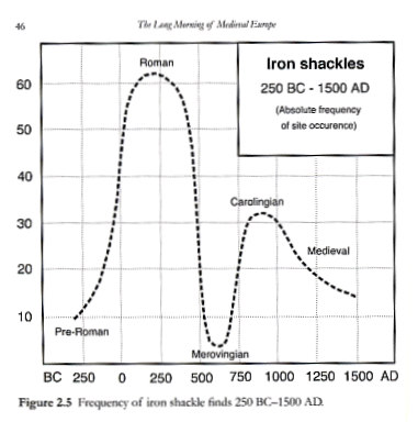 Kajdany w znaleziskach archeologicznych są wskaźnikiem skali niewolnictwa: po upadku Rzymu handel niewolnikami uległ załamaniu, lecz odżywa gwałtownie w okresie Karolingów, by po jego zakończeniu systematycznie maleć