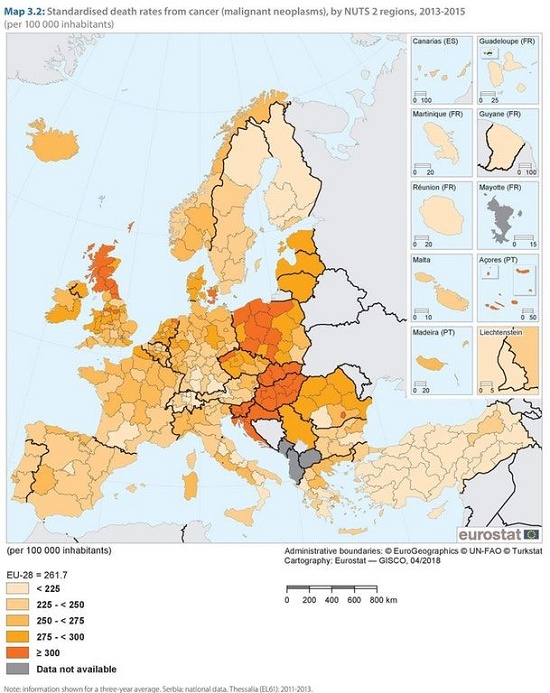 Eurostat opublikował statystyki dotyczące chorób nowotworowych w Europie. Wedle tych danych współczynnik śmiertelności nowotworowej w UE wynosi 260 (rok 2015). W Polsce natomiast jest on znacznie powyżej średniej: 304 (liczba zgonów z powodu raka na 100 tys. mieszkańców). Polska lokuje się na 5 miejscu najwyższej śmiertelności rakowej wśród 34 raportowanych krajów europejskich. Dane te są tym bardziej wymowne, że sama zachorowalność na nowotwory jest w Polsce niższa niż w większości krajów europejskich. Sytuacja ta nie wynika z braku lekarzy, co więcej bowiem okazuje się, że Polska ma niemal najwyższą w Europie liczbę onkologów na 100 tys. mieszkańców — pod tym względem wyprzedzają nas jedynie Włochy. W roku 2015 z powodu nowotworów zmarło w Polsce ponad 100 tys. osób. Można zatem powiedzieć, że złośliwy rak toczy Polskę.
