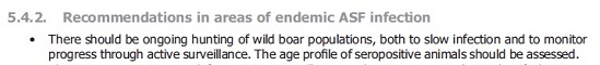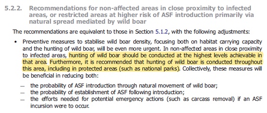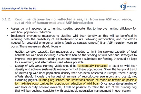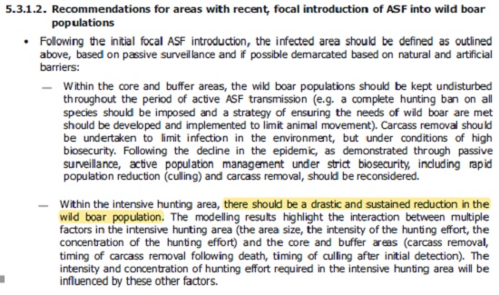 Walka z ASF musi być wieloaspektowa, ale niedorzecznością jest postulowanie zastąpienia odstrzału nadzorem biernym czy bioasekuracją. O ile w 2015 EFSA rekomendowała masowy odstrzał jedynie na obszarach występowania ASF i w strefach buforowych, o tyle w 2018 masowy odstrzał rekomendują także dla innych obszarów. Według EFSA: