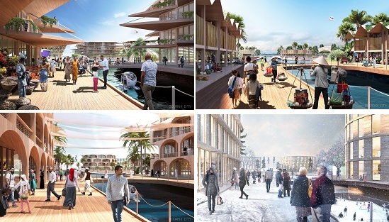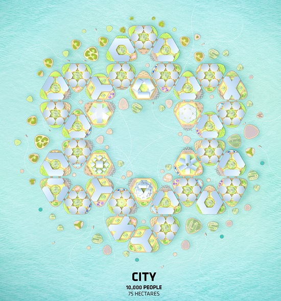 Sześć wiosek zorganizowanych wokół dużego wewnętrznego portu grupowałyby się w miasto-archipelag, o średnicy 1,3 km, chroniący wewnętrzny krąg wody. Ów sztuczny archipelag byłby na tyle elastyczny, by miasto mogło migrować w razie potrzeby, np. gdyby poziom wód stał się zbyt niski.
