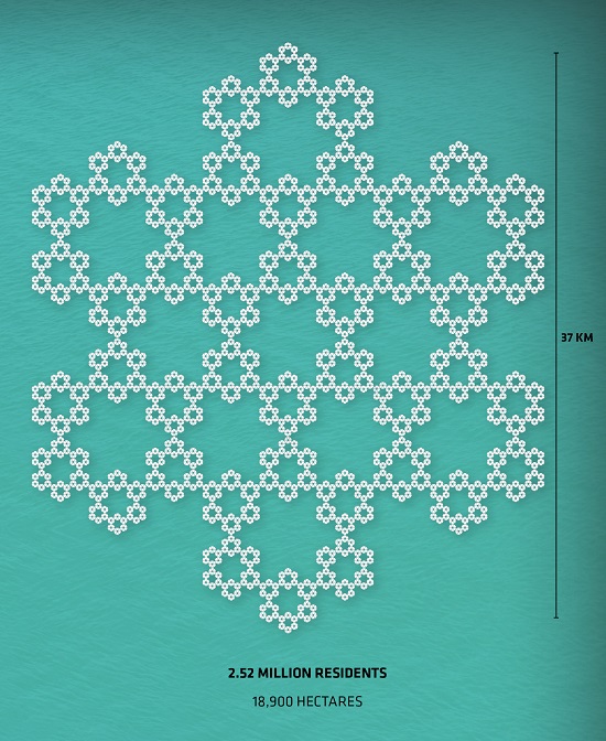 Same archipelagi mogą się dalej rozrastać ku metropolii w kształcie płatka śniegu zamieszkiwanego przez 2,5 mln ludzi.