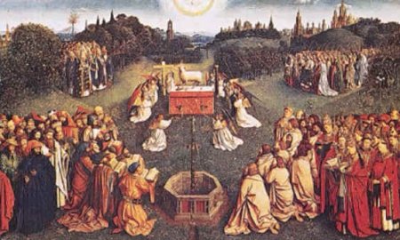Baranka Mistycznego Jana Van Eyka, 1432. Żydzi czcili cielca, chrześcijanie — barana. Jak podaje MEP PWN: "W części centralnej