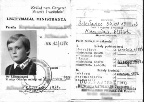 we wszystkim: oazy, pielgrzymki, wycieczki, jasełka… Byłem w parafii naprawdę wzorowym i podziwianym za gorliwość ministrantem. Ba, byłem lektorem, posiadam nawet legitymację ministrancką.