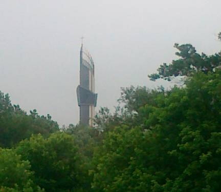 na wysokości dworca, spojrzałem w stronę Łagiewnik i jak zwykle zobaczyłem wyłaniającą się z za drzew wieżę