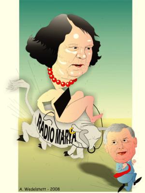 poglądami), od lat wytrwale walczy o przyłączenie Rzeczypospolitej do Watykanu, a przynajmniej ulokowanie tam narodowej