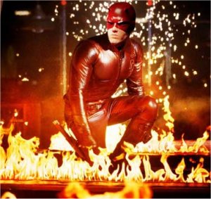 Daredevilem, ale w filmowej wersji jego przygód gra wyjątkowo nieprzekonywująco. W zasadzie reżyserowi wystarczył do filmu jeden kluczowy efekt niby obrazujący