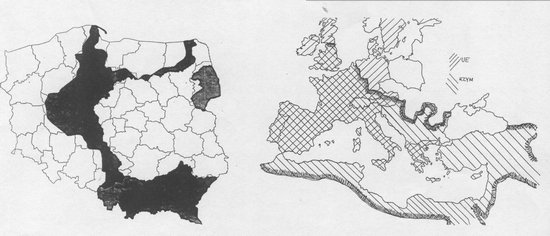 Na naszej mapie Polski widoczny jest zasięg prawa rzymskiego. Obejmuje on Pomorze, Wielkopolskę, część Górnego Śląska i rejon Krakowa. Pojęcie danego słowa, umowy, poziomu wykonanej pracy ma tam zgoła odmienne znaczenie niż w reszcie kraju. Obliczywszy procent ludności Polski zamieszkały na tym terytorium i odsetek dochodu narodowego wypracowywany tamże łatwo stwierdzić, że będzie on wyższy na głowę niż w pozostałej części kraju. Nie jest przypadkiem, że na tych ziemiach właściciele domów i kamienic zagrabionych w czasie komuny otrzymali je z powrotem. W pozostałej