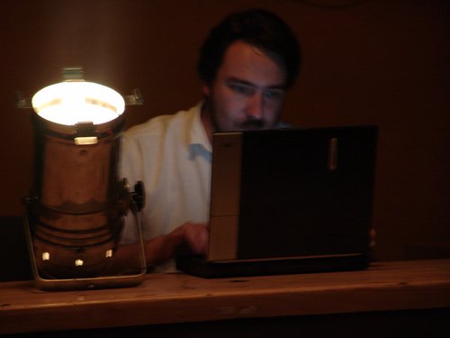W świetle reflektorów Wojtek przygotowuje skrypt wyborczy...