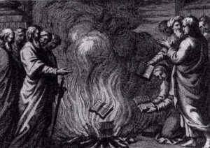 "Pewne jest, iż w owych pierwszych czasach, kiedy religia nasza zaczynała sobie zdobywać powagę dzięki wydawanym na jej korzyść prawom, gorliwość wielu ludzi podniosła się przeciw wszelakiego rodzaju pogańskim księgom, przez co piśmiennictwo całego świata doznało nadzwyczajnej straty; rozumiem, iż