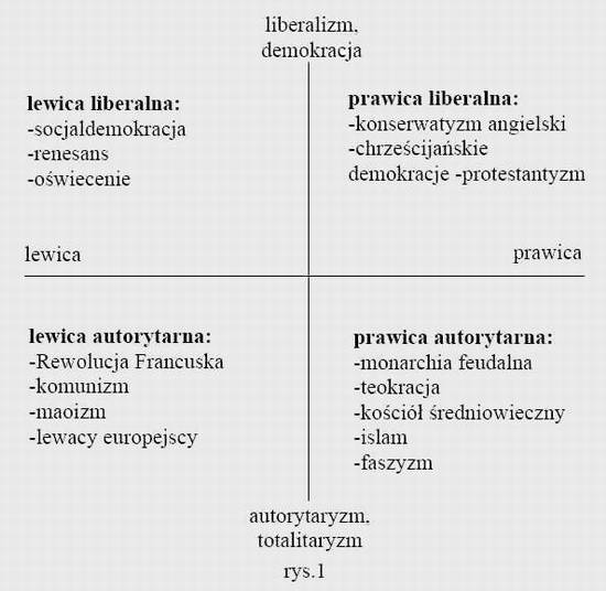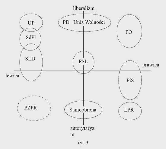 autorytarnej (LPR i częściowo PiS, „społeczna nauka Kościoła"). Partie