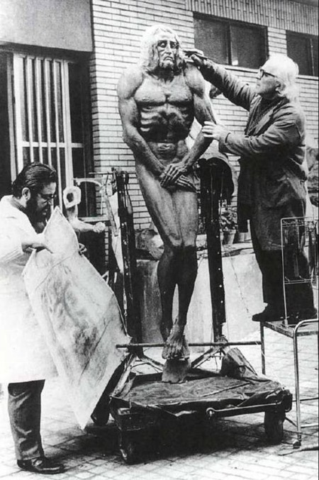 Rys. 3. Rekonstrukcja człowieka(?) z Całunu Turyńskiego, z prawej strony widoczny jest „Judasz”, który wspina się, aby oddać słynny pocałunek.