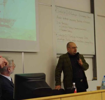 Wykład dr hab. Pawła Golika, obok siedzi moderator konferencji, Marian Jankowski z PSR |