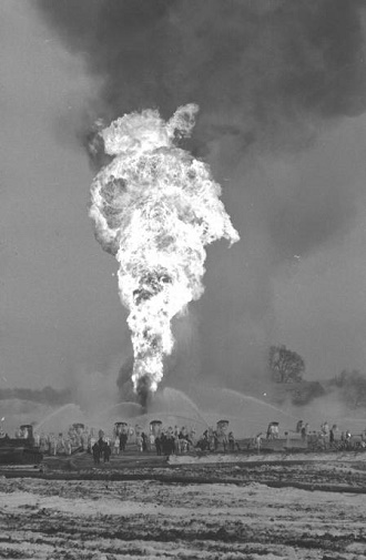 słup ognia sięgnął 130 m wysokości i widać go była w promieniu wielu kilometrów. Paląca się ropa tryskała pod ciśnieniem 560 atmosfer i była to największa