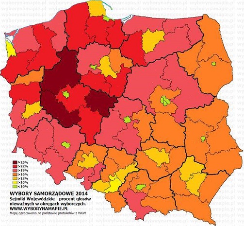 Czym innym jest skala głosów nieważnych sięgająca 25 % i więcej. Również w tym przypadku nie ma żadnej korelacji między ilością głosów nieważnych a wynikiem danej partii. W świętokrzyskim, gdzie ludowcy triumfowali z wynikiem prawie 50% (exit poll dawał zwycięstwo PiS) było relatywnie mało głosów nieważnych. Zachodzi za to silna korelacja między tym kto zajmował pierwsze miejsce (stronę) na książeczkach wyborczych a uzyskanym wynikiem. PSL wylosowało jedynkę i być może to zadecydowało o ponad przeciętnym wyniku. W wyborach do Rady miasta Warszawy, tam gdzie na pierwszej stronie figurowała lista PiS-u partia ta osiągnęła wynik ponadprzeciętny. [ 1 ] Rozwiązanie powinno być jedno — pierwsza strona powinna zawierać instrukcję i LISTĘ wszystkich kandydatów a nie wybraną jedną listę, bo jak się okazuje gro osób z lenistwa stawia krzyżyk na okładce nawet nie zaglądając do środka...