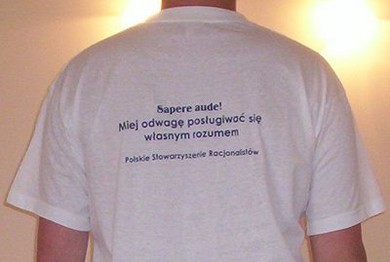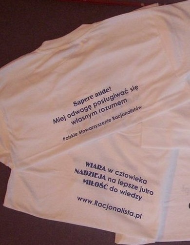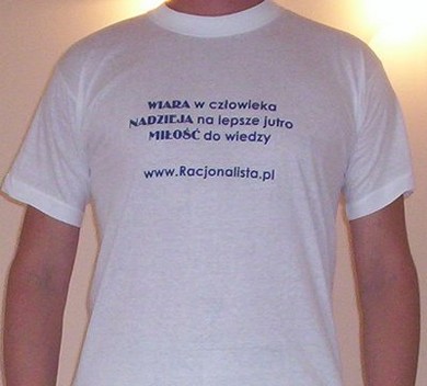 Koszulka najbardziej stonowana przeznaczona przede wszystkim dla członków i sympatyków Polskiego Stowarzyszenia Racjonalistów.