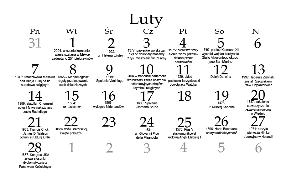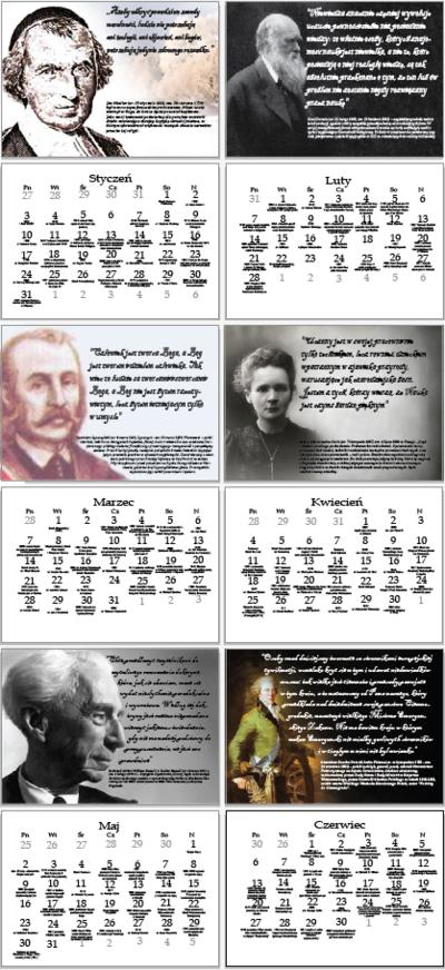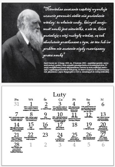 Kalendarz to świetny pomysł. Nie podoba mi się jedynie czcionka (bodajże Blackladder) użyta do cytatów. Jednakże wybór i pomysł - wart pogratulowania!