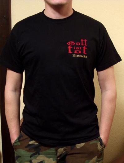 Pozycja dodana do koszyka Koszulka GOTT IST TOT - Nietzsche Katalog: KOSZULKI RACJONALISTY Koszulka Wydawca: Racjonalista Materiał: Bawełna Technologia: Haft Dostępność: 7 dni Cena: 37,00 zł (bez rabatów)