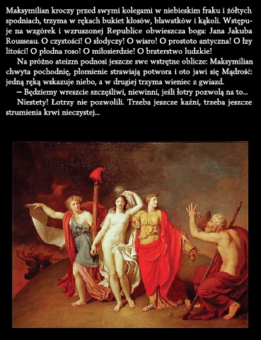"Robespierre, głosem dobitnym wymownie przemówił przeciwko nieprzyjaciołom Republiki. Strasznymi, metafizycznymi argumentami godził w Brissota i jego wspólników. (...) Ewaryst słuchał i rozumiał... za głosem mędrca, odnajdywał wyższe i czystsze prawdy, pojmował metafizykę