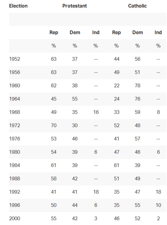 głosują na demokratów; z kolei protestanci zawsze głosują na republikanów.
