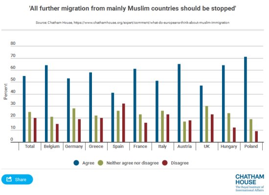 badanych krajach większość domaga się zakazu imigracji do Europy dla muzułmanów: