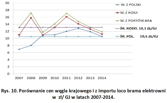 węgla. Przez ostatnie lata polski węgiel kosztował 10,5 zł/GJ, natomiast rzekomo