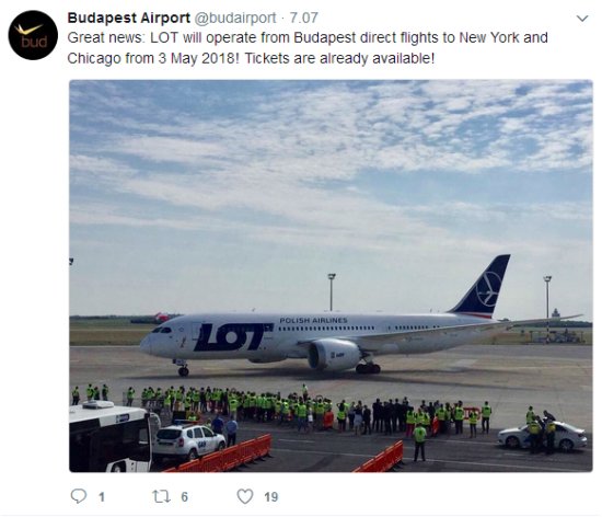 zachodniej Rumunii oraz z krajów bałkańskich. W obrębie dwóch godzin od lotniska w Budapeszcie mieszka aż 8 mln ludzi. LOT wchodzi więc na nowy duży rynek. W inauguracji połączenia na Węgrzech udział wziął zarówno Mateusz Morawiecki, jak i szef węgierskiego MSZ. Jest to praktyczny wyraz rozwoju współpracy wyszehradzkiej i Trójmorza. Reaktywacja na Węgrzech lotów do USA jest jedynie pierwszym krokiem. Drugim będą loty azjatyckie, czyli najbardziej perspektywiczna żyła złota dla LOTu.