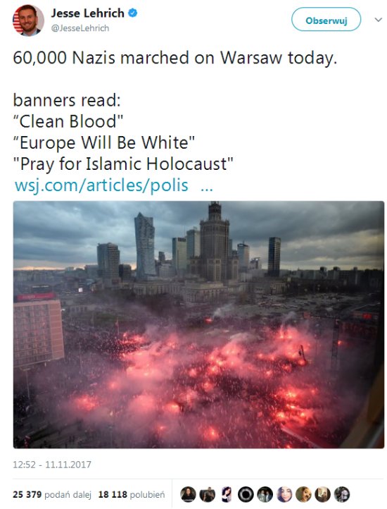 przekaz, że na ulice Warszawy wyszło 60 tys. nazistów, którzy pod