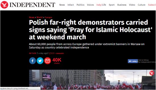 Informację o tym, że w Polsce 60 tys. modliło się o holocaust dla muzułmanów powtórzyła cała „poważna" prasa światowa: The Guardian,