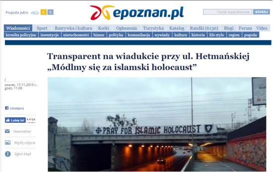 Jeśli idzie o transparent „Pray for Islamic Holocaust" to