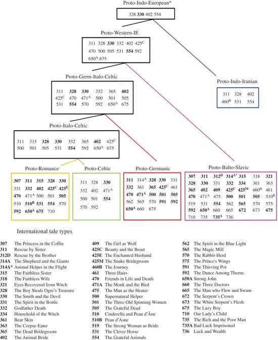 jako Klasyfikacja Aarne-Thompsona-Uthera. Choć nie wszyscy badacze zgadzają się z tym w całej rozciągłości, wszystkie współczesne kultury indoeuropejskie