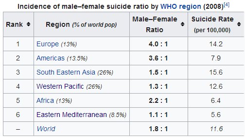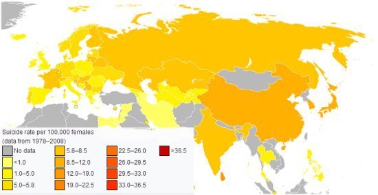 pozycja kobiety. O ile Europa i Ameryka ma większą przewagę męskich samobójstw