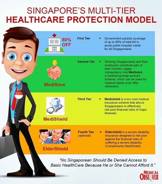 Wieloletni premier Singapuru (był nim w latach 1959-1990) Lee Kuan Yew uważa, że ideał darmowego, nieograniczonego dostępu do usług medycznych jest niepraktyczny i prowadzi do rosnących w nieskończoność kosztów. Dlatego podstawą systemu ochrony zdrowia w Singapurze jest to, że pacjenci zawsze płacą przynajmniej część kosztów wizyty u lekarza.
