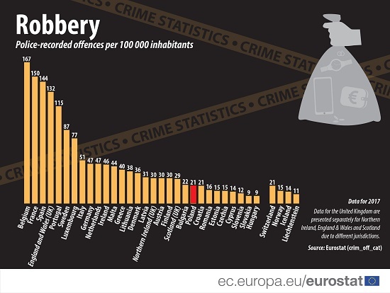 Polskie ulice są jednymi z najbezpieczniejszych w Unii Europejskiej. Oto europejski ranking rabunków, czyli kradzieży z użyciem przemocy. Gdzież nam do Belgii, Francji czy Szwecji! Polska ma dokładnie taki sam wskaźnik tych przestępstw, jak Szwajcaria.