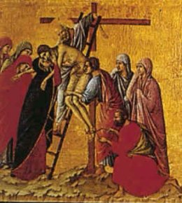 Jak sugerują nam niektóre malowidła, Chrystus został z krzyża zdjęty. To jednak nie przeszkadza Kościołowi, aby wisiał na nim do dnia dzisiejszego. |