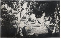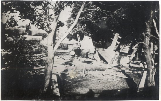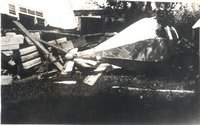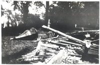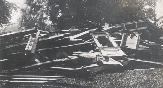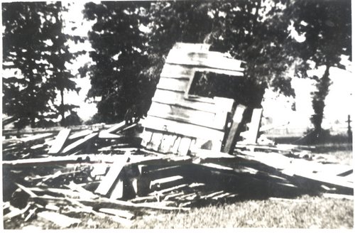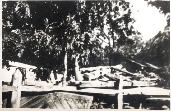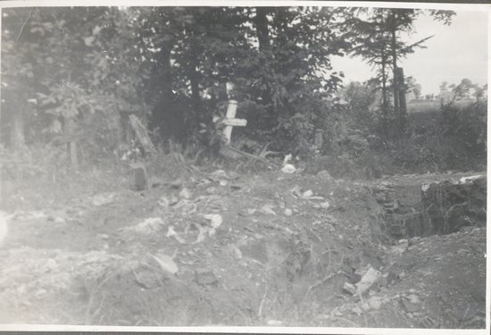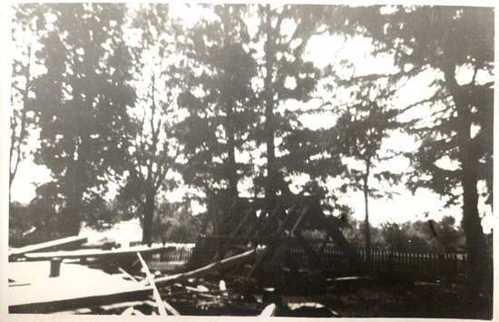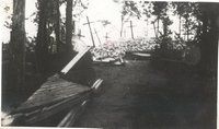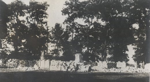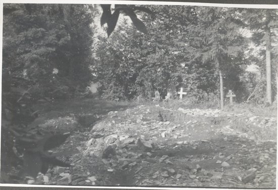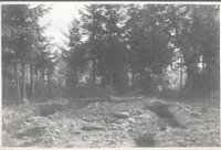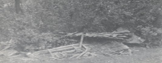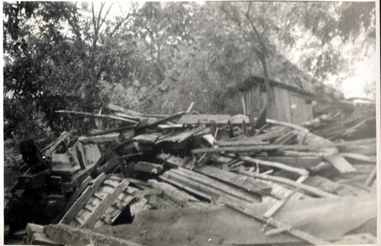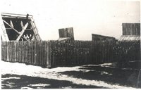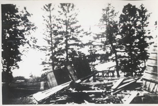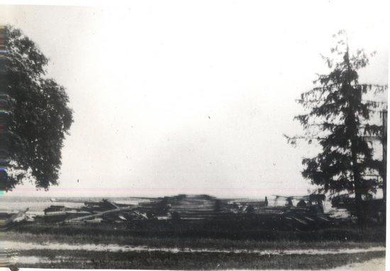 Wieś Hołubie: z lewej wykarczowywanie drzew, otaczających ongiś cerkiew; z prawej — materiał ze zburzonej cerkwi.
