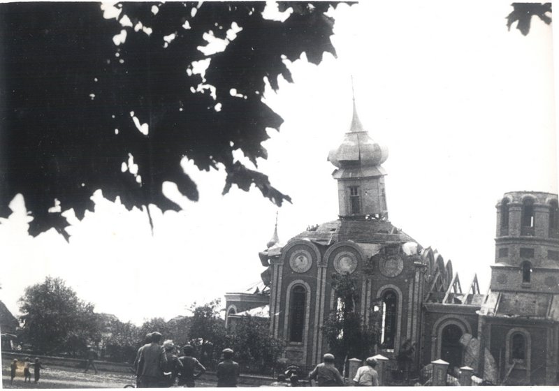 Wieś Pryhoryłe: różne stadia burzenia cerkwi