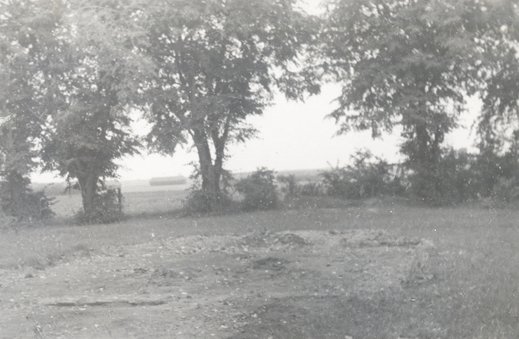 Wieś Czopów: z lewej — dach cerkwi; z prawej — miejsce, gdzie stała cerkiew.