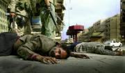 planie przerażona twarz mężczyzny z pistoletem wycelowanym z tyłu. Leży na chodniku z rękoma wyciągniętymi w geście poddania. Za nim stoją żołnierze amerykańscy z długimi karabinami. W momencie, w którym to zdjęcie zostało zrobione, twarz tego anonimowego człowieka odzwierciedlała strach, bezsilność i konsternację. Teraz jego szeroko rozwarte oczy patrzą na mnie uporczywie i w