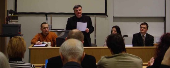 Wykład dr hab. Pawła Golika, obok siedzi moderator konferencji, Marian Jankowski z PSR |