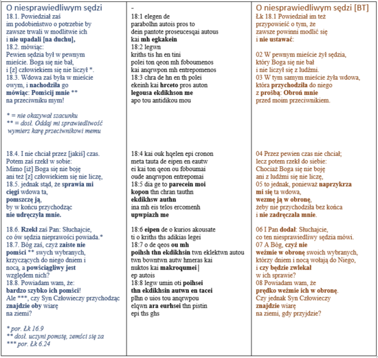 tekstu ewangelicznego. W poniższej tabeli zawarto (od lewej) przekład