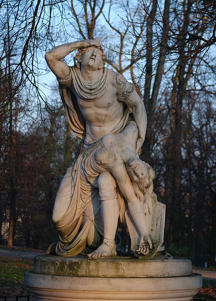 Tankred i Klorynda, kopia rzeźby w parku pałacowym przy Pałacu Czartoryskich w Puławach. Wikimedia