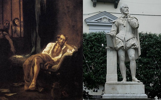 Z lewej: Delacroix — Tasso w szpitalu dla obłąkanych, z prawej — Tasso na cokole