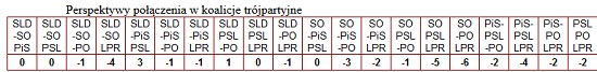 stosowanych w Polsce. Podobną analizę przeprowadziliśmy tworząc koalicje trójpartyjne. Załączona tabela przedstawia wyniki uzyskane dla koalicji